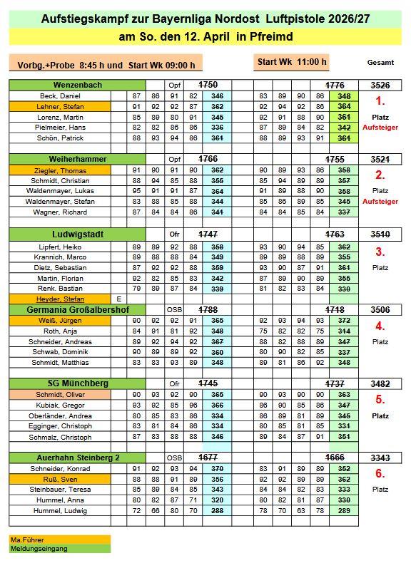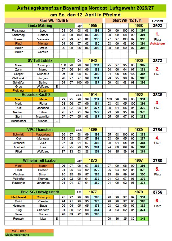 Bezirksliga: Punktgleichheit auf den ersten vier Plätzen, hier entschieden die Ringzahlen über die Platzierung